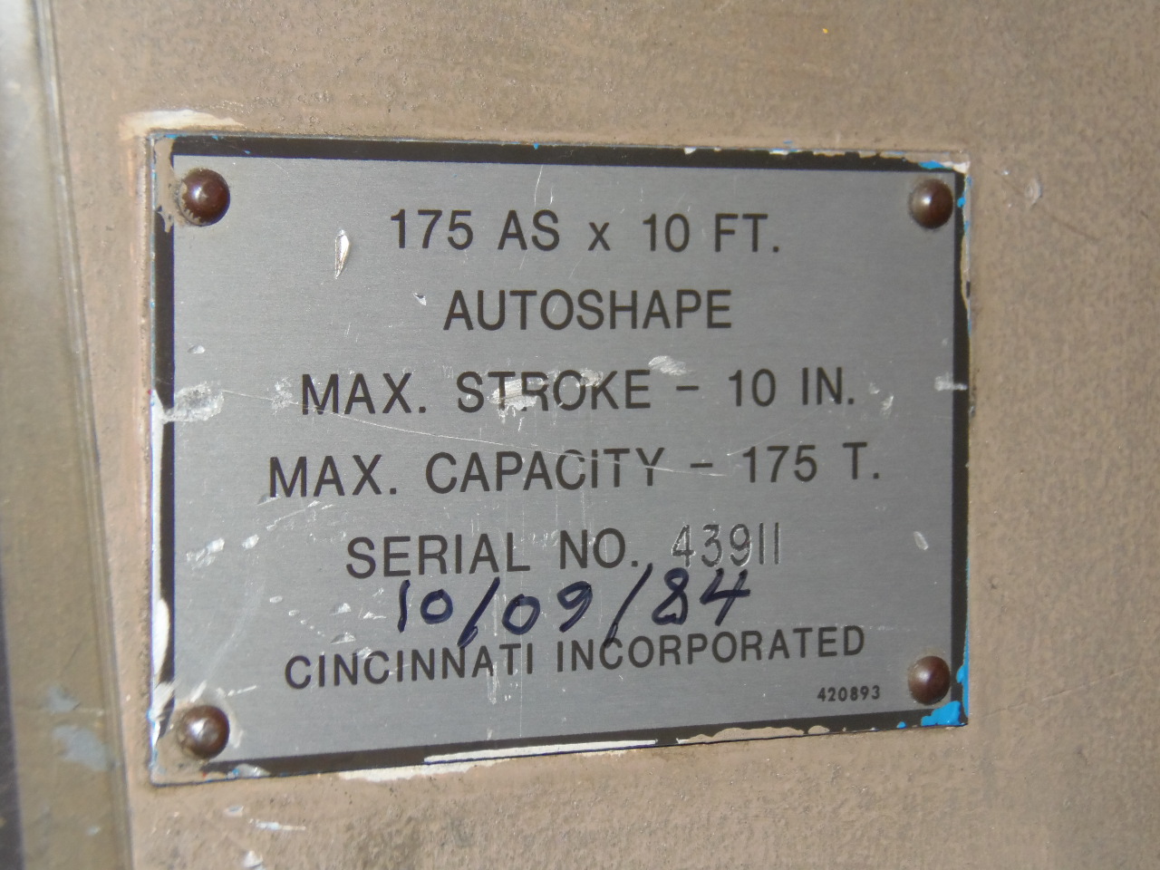 175 TON CINCINNATI HYD, 175AS-10, HYD. CROWNING, CNC CONTROL, 12' O.A., 10'6" BET.