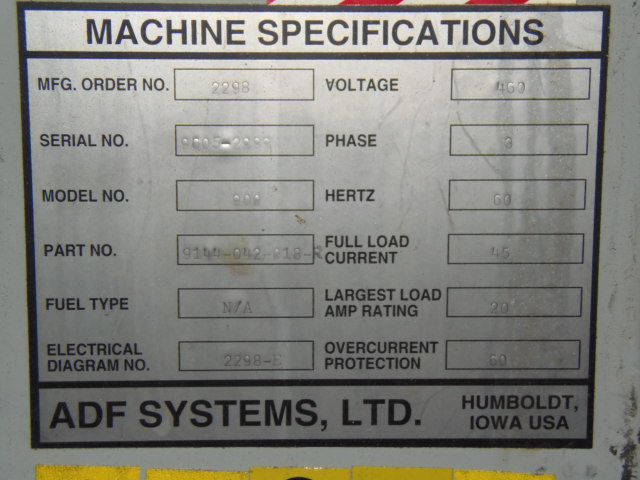 ELECTRICS: 460V, 3PH, 45 AMP.