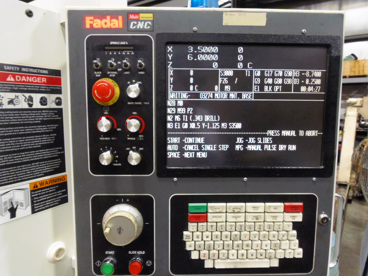 FADAL 88HS MULTIPROCESSOR CNC CONTROL WITH 12" X 9" CRT AND GRAPHICS