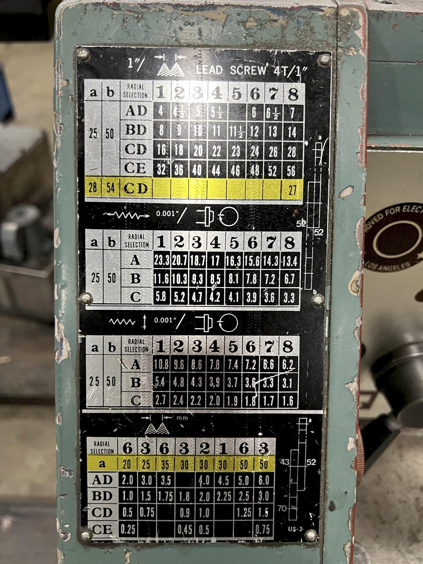SPINDLE SPEEDS L,H. 30-1800 RPM